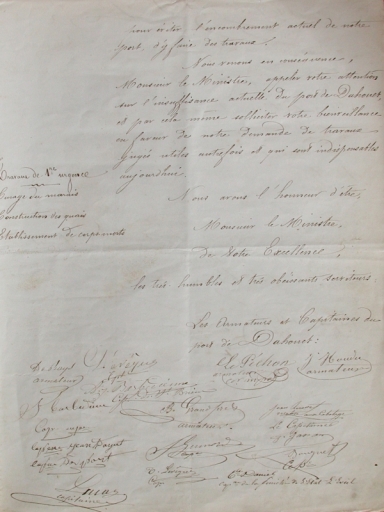 Lette du 29 mars 1861 des pétitionnaires armateurs de Dahouët (AD 22)Immatriculation