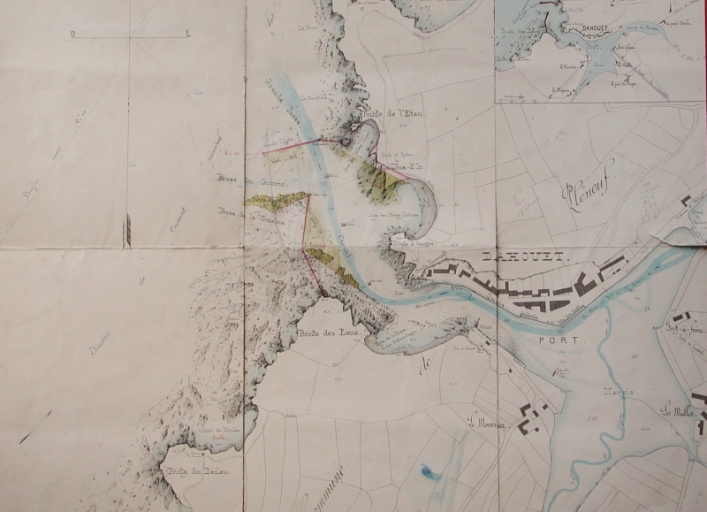 Plan : avant-projet de construction des jetées de l'avant-port de Dahouët en 1879 (AD 22)Immatriculation