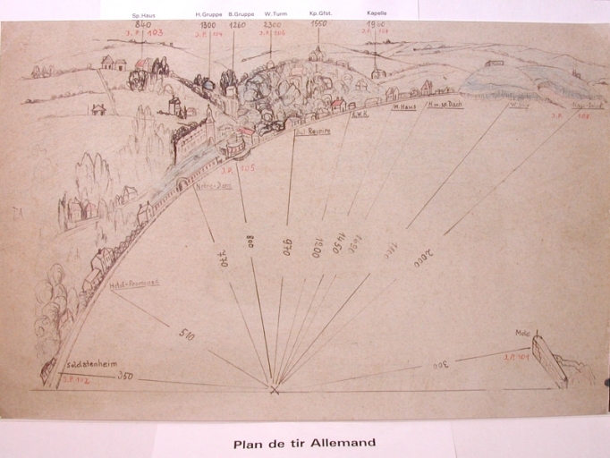 Dessin manuscrit d'un plan de tir allemand,