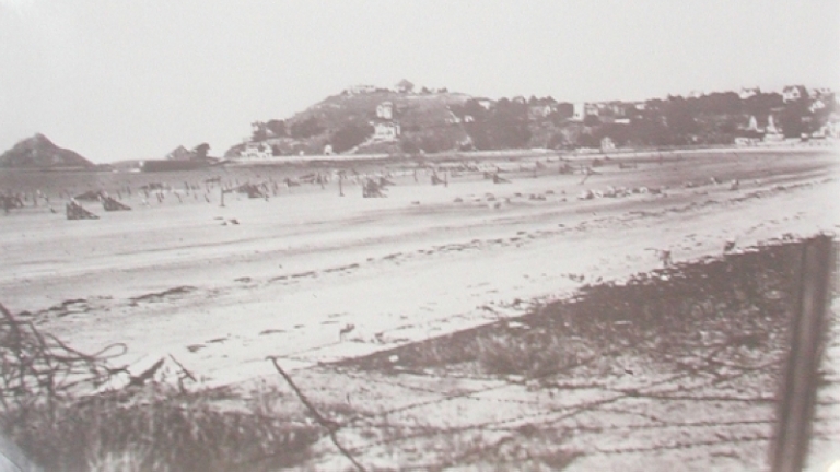La plage du Val-André en août 1944, avec les obstacles anti-débarquement (collection Grimaud)Immatriculation