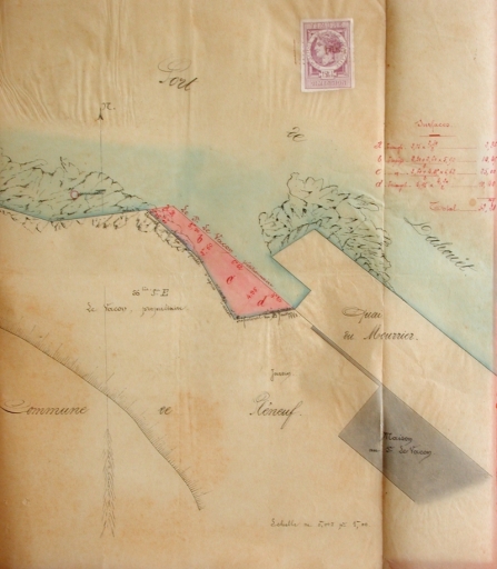 Plan des lieux avec le terrain à endiguer dans le prolongement des quais et la maison Le Vacon (AD 22)Immatriculation