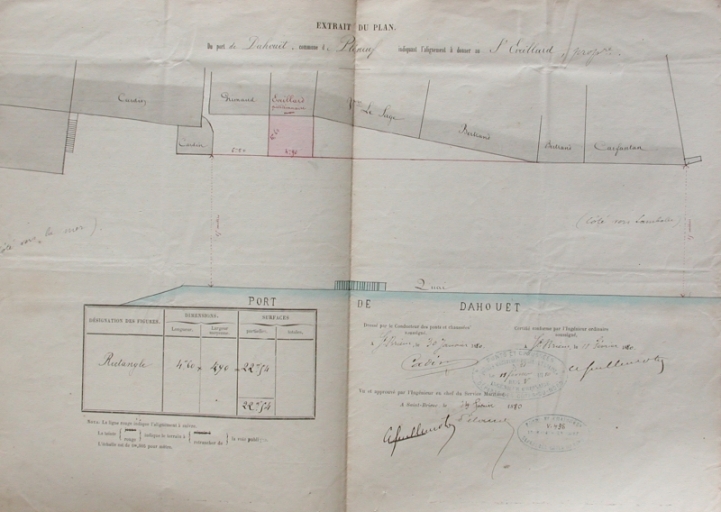 Plan de 1880 selon cadastre : maison Eveillard (maître du port de Dahouët)Immatriculation