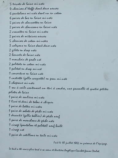 Inventaire après décés d'effets et hardes du matelot mort en mer Casimir Courbet le 17 juillet 1865 à bord de la Marie-Suzanne de Dahouët (Atelier du Patrimoine)Immatriculation