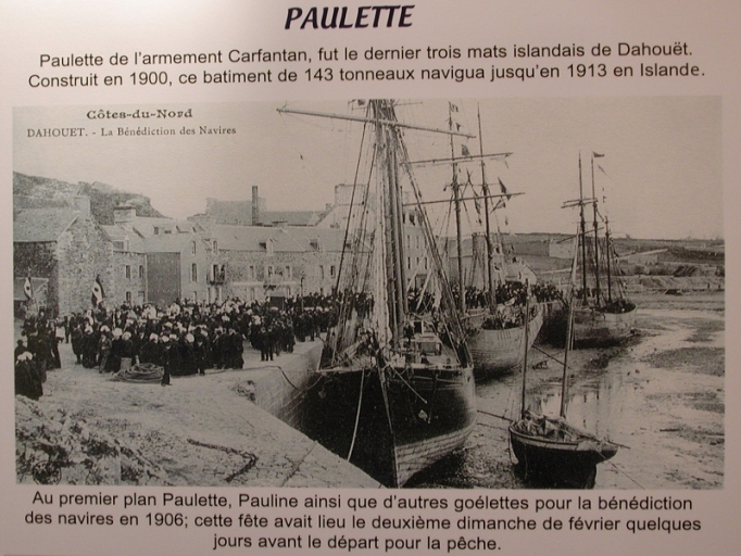 La Paulette : dernier trois-mâts islandais de Dahouët en 1913, pour l'armement Carfantan (Atelier du Patrimoine)Immatriculation