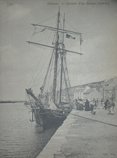 Goélette en déchargement au quai Hamonet (collection Grimaud)Immatriculation
