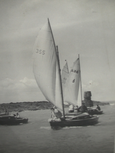 Régates de Belougas à Dahouët dans les années 1960-70, près de l'ancienne tourelle de déhalage (collection Grimaud)Immatriculation