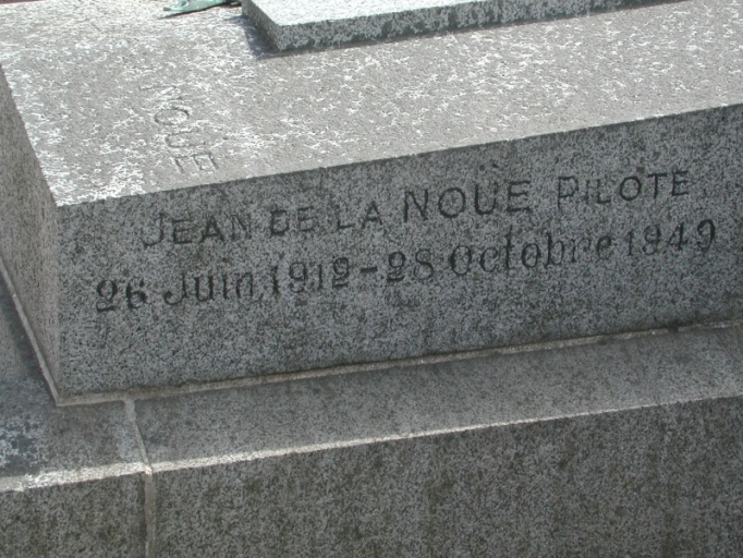 Inscriptions gravées sur la pierre tombale de Jean de la Noüe, aviateur (1912- 28 octobre 1949)Immatriculation