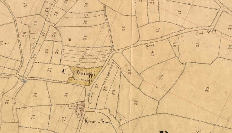 Extrait des plans cadastraux parcellaires de 1848 (AD 22).Immatriculation