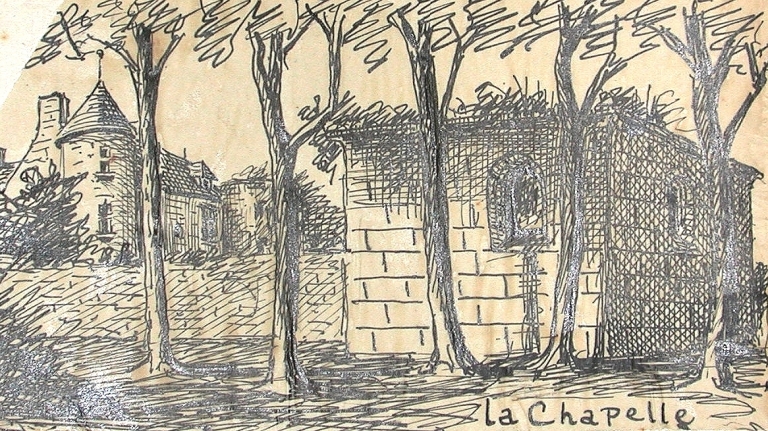Vue générale du manoir et de la chapelle au premier plan, 23 juin 1931 (Henri Frotier de la Messelière / AD 22).Immatriculation