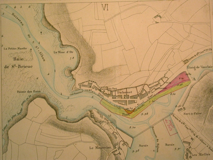 Plan aquarellé du port de Dahouët avec vue du moulin (8 février 1889).Immatriculation
