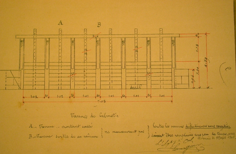 Elévation des vannes de Calmet (mars 1906).Immatriculation