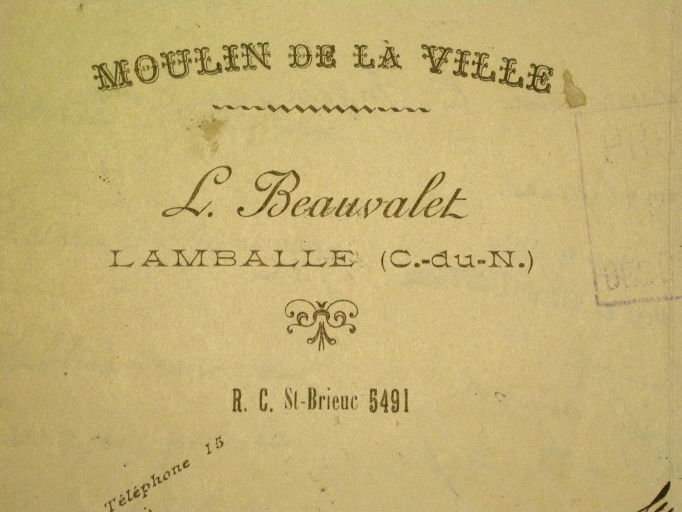 Moulins à farine et à tan, puis minoterie de la Ville, puis de la société Anonyme des minoteries Piéto, actuellement immeuble à logements, 13 rue du Docteur Lavergne (Lamballe fusionnée en Lamballe-Armor en 2019),