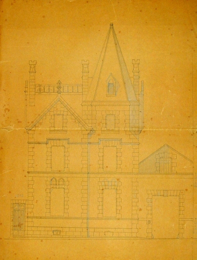Elévation sur rue. Dessin par Gustave Bigot, 1878 (A. E. Quimper, fonds Bigot, 8 L)Immatriculation