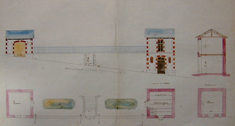 Communs, élévations sur rue et coupe par Gustave Bigot, 1862 (AE Quimper, 8 L fonds Bigot)Immatriculation