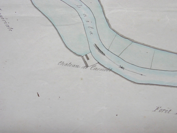 Plan d'une partie de la rivière de Quimperlé, 1870. Détail. Croquis accompagnant le rapport de l'ingénieur des Ponts et Chaussées (A.D. Finistère, 7 S 51)Immatriculation