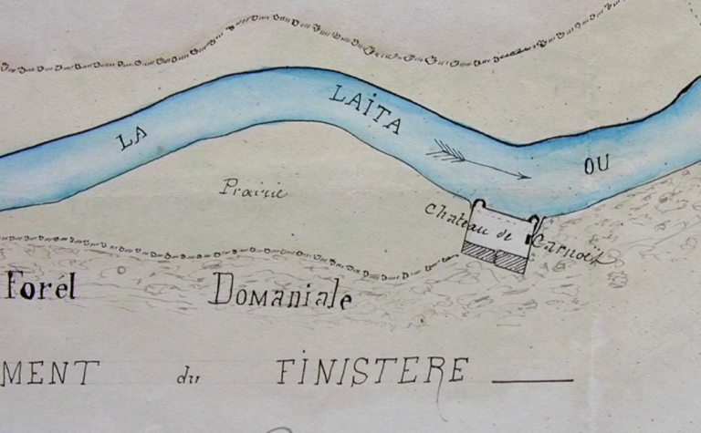 Extrait du plan de la rivière de la Laïta, 1877. Détail. Croquis accompagnant le rapport de l'ingénieur des Ponts et Chaussées (A.D. Finistère, 7 S 51)Immatriculation