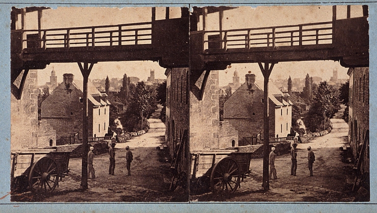 Le moulin du Combout en 1856. Photographie stéréoscopique de FURNE et TOURNIER (Musée départemental breton, Quimper)Immatriculation