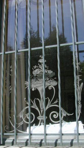 Ancien logement patronal, détail d'une vitré à décor gravéImmatriculation