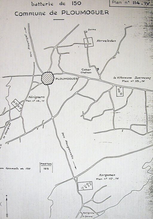 Ploumoguer : plan de situation des trois batteries lourdes de Ploumoguer, n° 114, rapport Pinczon du Sel. Livre IV, vers 1947, Service Historique de la Marine, BrestImmatriculation