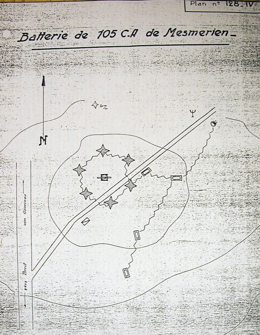 Plan de la batterie antiaérienne de Mesmerrien, n° 128, rapport Pinczon du Sel. Livre IV, vers 1947, Service Historique de la Marine, BrestImmatriculation