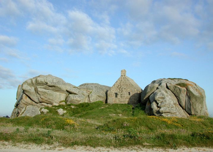Kerlouan : vue du célèbre corps de garde du Ménez Ham au milieu d'un chaos de granite qui le protège et le dissimuleImmatriculation