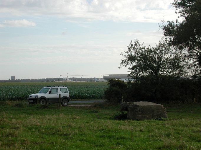 Vue des vestiges du mur pare-éclats en bordure de piste devenue route départementaleImmatriculation