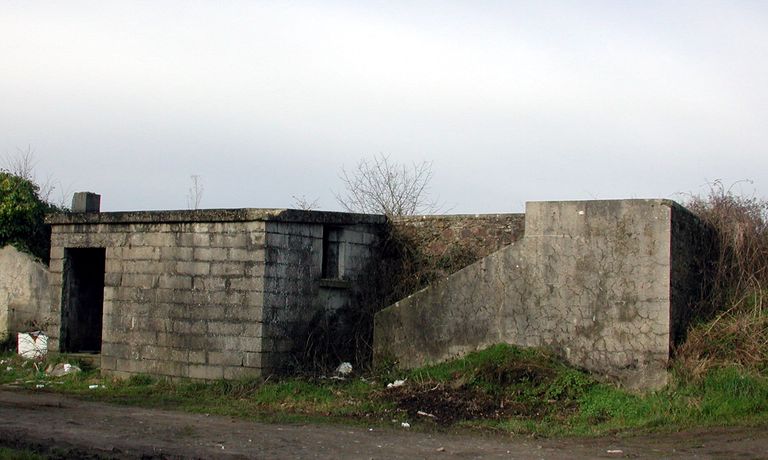 Vue du corps de garde avec plate-forme pour pièce antiaérienne. Désaffecté, il sert aujourd'hui de décharge sauvageImmatriculation