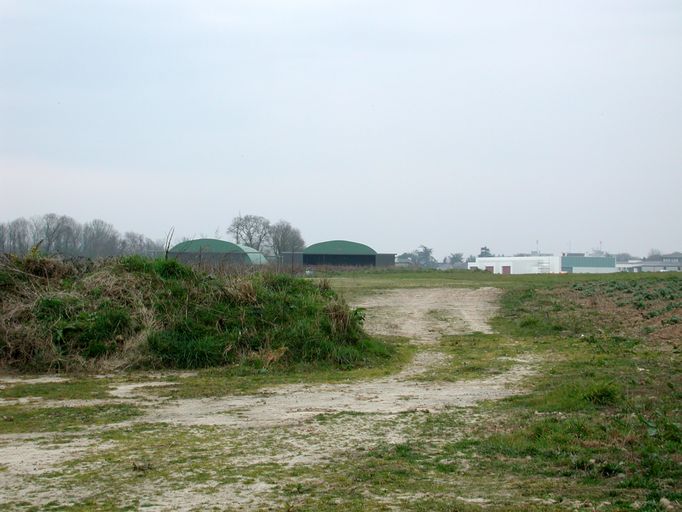 La piste vers le Sud. En arrière-plan, les hangars de l'aéroport actuelImmatriculation
