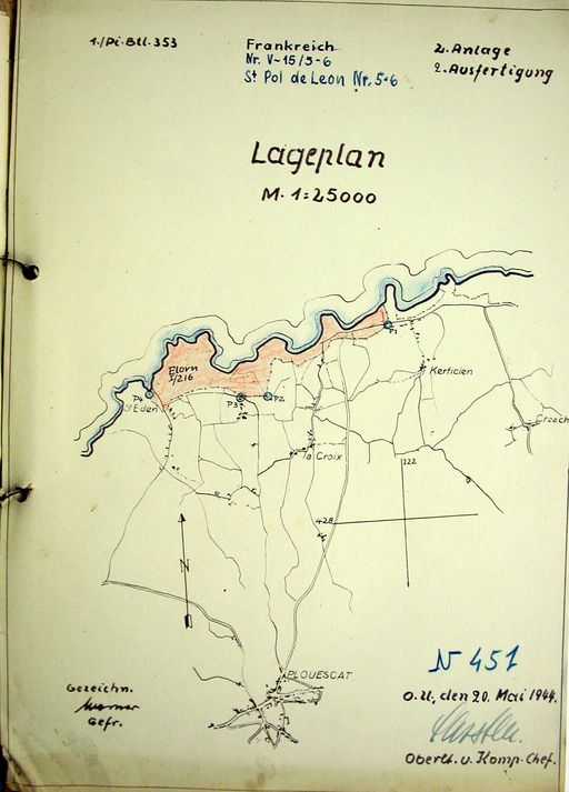 Plouescat : plan de situation des champs de mines de Plouescat entre Kerfissien et Saint-Eden, mai 1944, sources Fort MontbareyImmatriculation