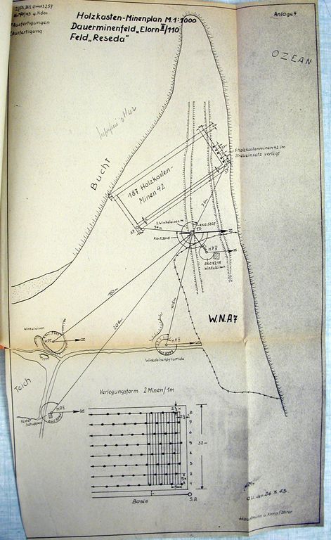 Plan de détail de l'ensemble fortifié de Penn ar C'hleuz codé A7 (Elorn II/110), mars 1943, sources Fort MontbareyImmatriculation
