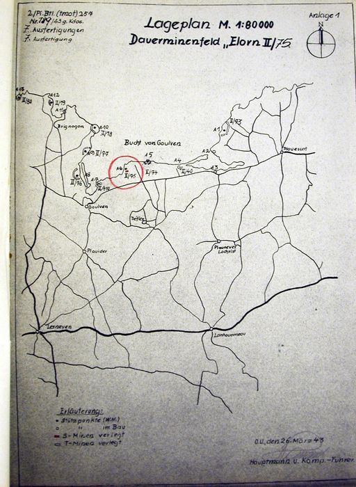 Plan de situation des champs de mines de l'ensemble fortifié codé A6, mars 1943, sources Fort MontbareyImmatriculation