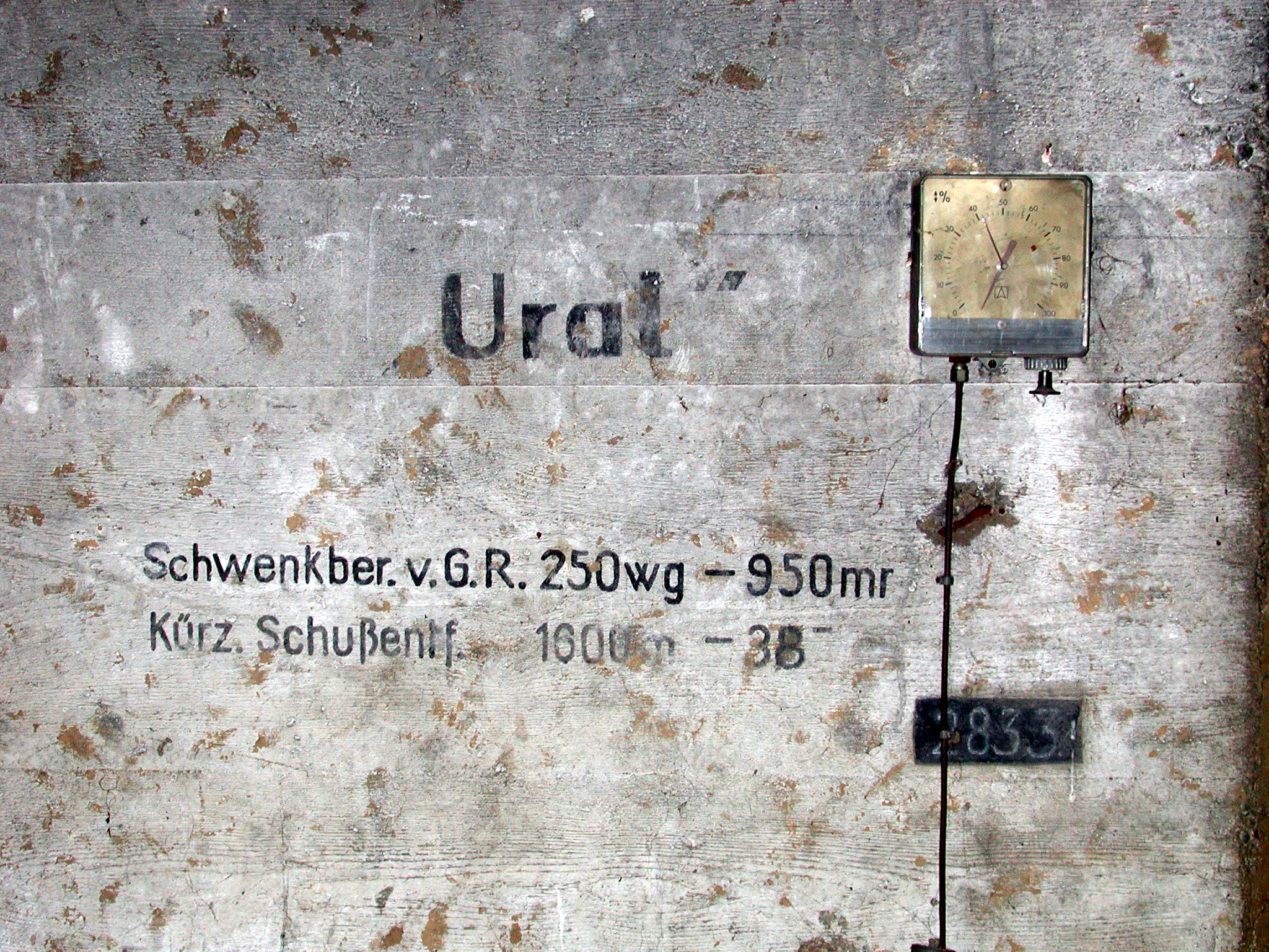 Vue intérieure de l'un des bunkers de type 669 (quatrième casemate) : Ural (nom du bunker) et instructions de tir (état en 2003)Immatriculation