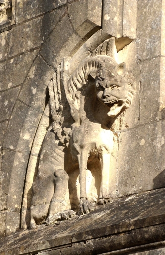 Façade d'entrée, détail d'un monstre ailéImmatriculation