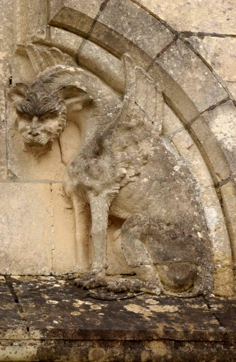 Façade d'entrée, détail d'un monstre ailéImmatriculation