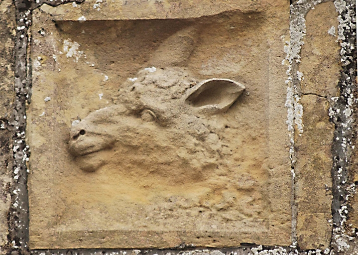 Façade d'entrée, bas-relief, tête de brebisImmatriculation