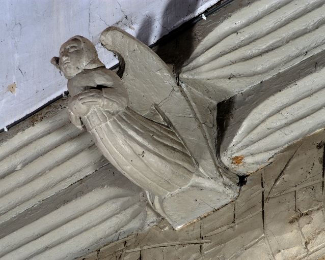 Détail : sablières moulurées en sifflet et blochets figurant un angeImmatriculation