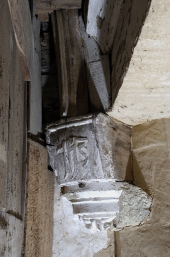 Culot sculpté portant l'inscription IHSImmatriculation