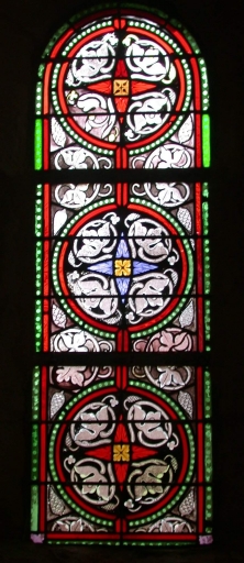 Ensemble de la verrière à personnages de la baie 0 : Immaculée Conception et des 6 verrières décoratives des baies 1 à 5 et 00,
