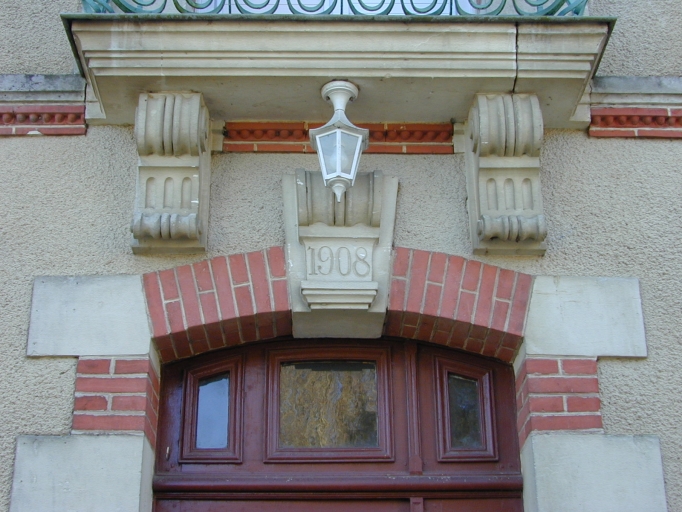 Linteau de la porte d'entrée, date de construction gravée : détailImmatriculation