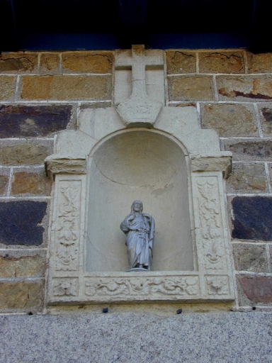 Façade antérieure, niche à statue gravée d'une date : détailImmatriculation