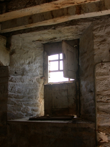 L'ancien logis, intérieur, revers de la fenêtre avec ses volets de bois : détailImmatriculation