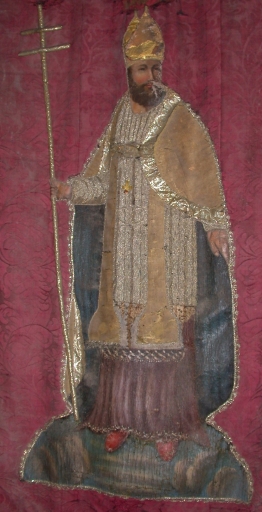 Bannière de procession paroissiale : Saint Martin, Christ en croix, église paroissiale Saint-Martin (Cesson-Sévigné),