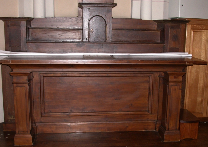 Ensemble de l'autel de la Vierge : autel, tabernacle, 2 gradins d'autel,