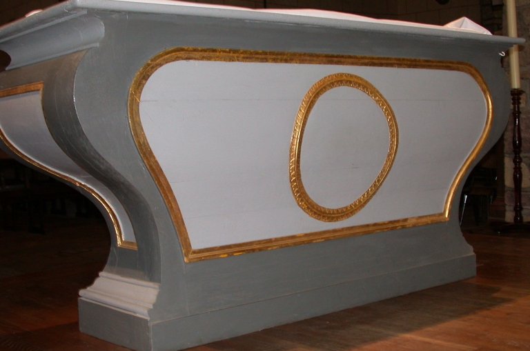 Ensemble de l'autel de la Vierge : autel, tabernacle, retable, 2 gradins d'autel, 2 degrés d'autel,