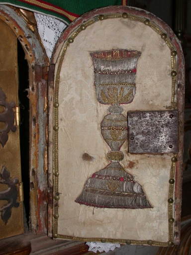 Tabernacle, décor du revers de la porte : calice en fil d'argent brodéImmatriculation