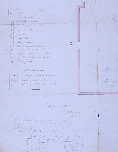 Plan de restauration de la maison d'école ; détail, légendeImmatriculation