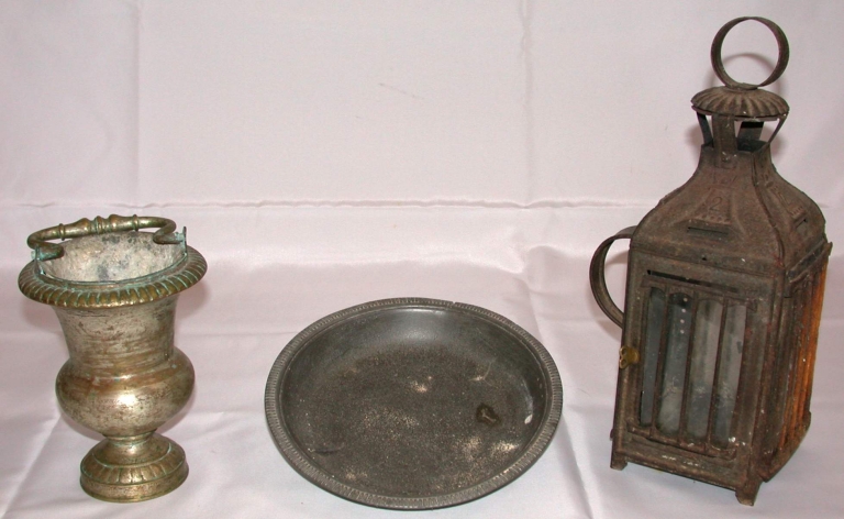 Seau à eau bénite, plat de quête, lanterne de processionImmatriculation