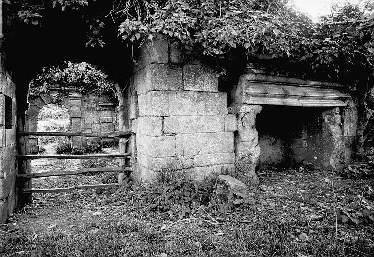 Vue de la cheminée de la salle en ruines du château prise en 1922 par Estève (Cliché Archives photographiques. Médiathèque de l'architecture et du patrimoine) © CMNImmatriculation