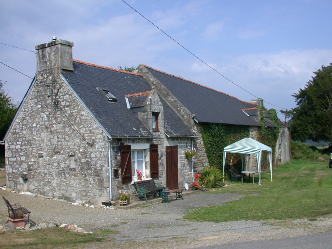 Ferme repérée : logis-étable 17e siècle et logis à pièce unique 19e siècle, vue générale sud-ouest, 1987 YE 49, 50Immatriculation
