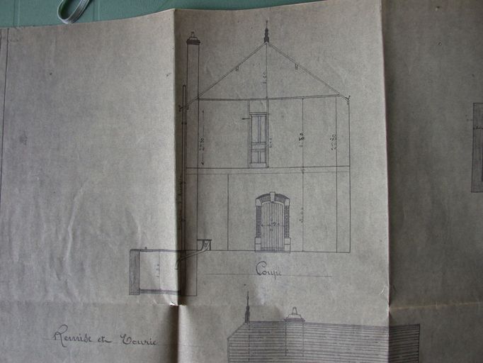 Remise et écurie. Coupe par Lefèvre entrepreneur, 6 juillet 1914. AM Vannes 5I162.Immatriculation